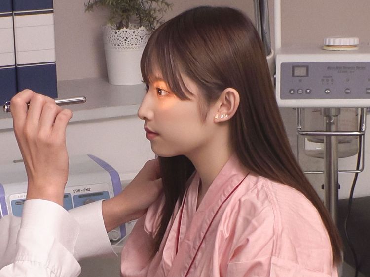 美女の豊かな乳房を揉み乳首をつまむセクハラ検診